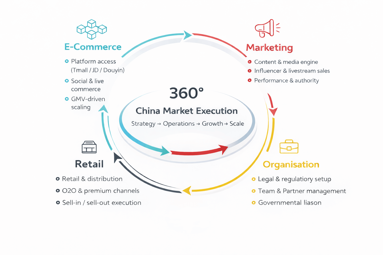 Aufbau und Pflege von direkten Beziehungen zu den relevanten Plattform-Einkäufern (z. B. Tmall, JD, Xiaohongshu, Kaola, VIP usw.). Lokalisierung von Content für das chinesische e-Commerce Ecosystem.
